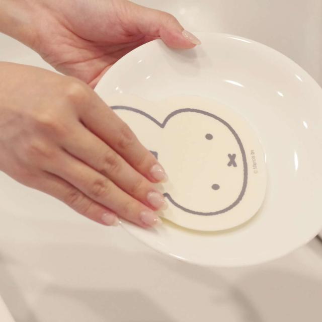 ミッフィーとボリスのお顔がプリントされた、優しい色合いが可愛いシリコン製のたわしです。吸盤付きなので、貼っておくことができて邪魔になりません。