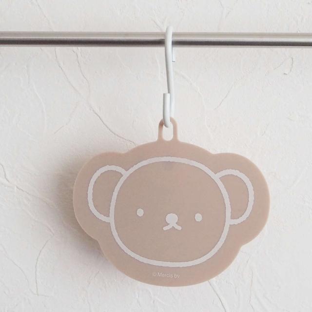 吸盤だけでなく吊り穴も付いています。タオルハンガーに吊ったり、お風呂場のキャビネットに吊ったりと、使う場所の近くに保管しやすいのもポイントです。吸盤で貼った時も、吊った時も可愛いお顔はこっちを向いていてくれます。