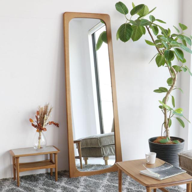 ミラー 全身 姿見鏡 幅62×高さ172cm 木製フレーム 立てかけタイプ Herit ( 鏡 姿見 全身鏡 天然木 北欧インテリア 完成品 北欧 ナチュラル オーク 無垢材 飛散防止 転倒防止 インテリア )