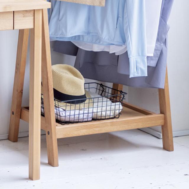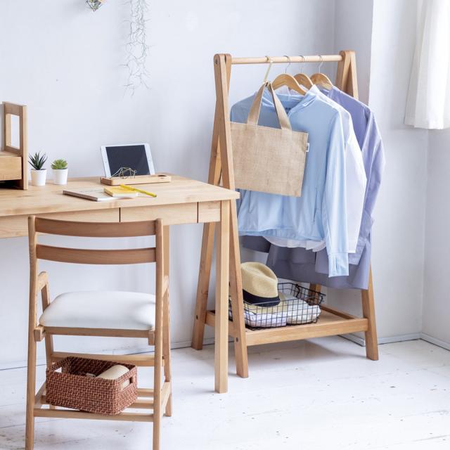 着る頻度の高い制服やシャツなどを、さっと掛けるのに便利なハンガーラック。出し入れがスムーズなので、お子さまの身支度の習慣化にもぴったりのアイテムです。