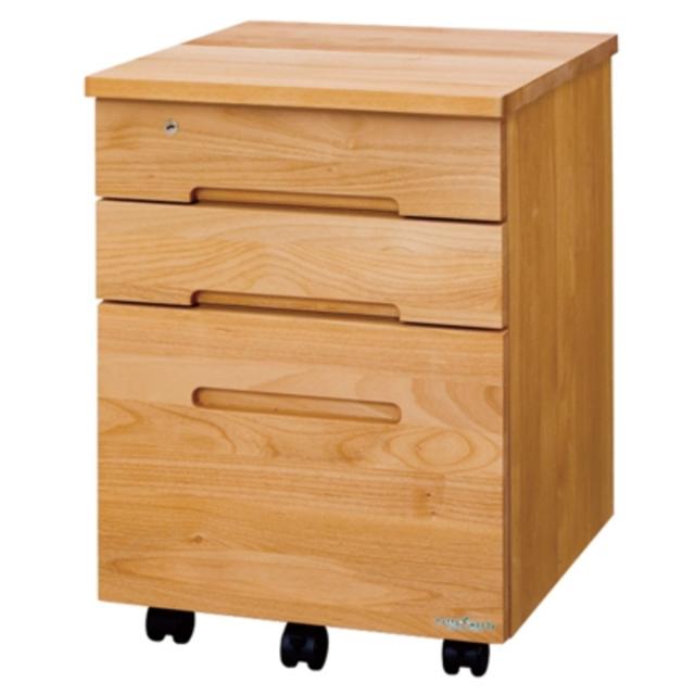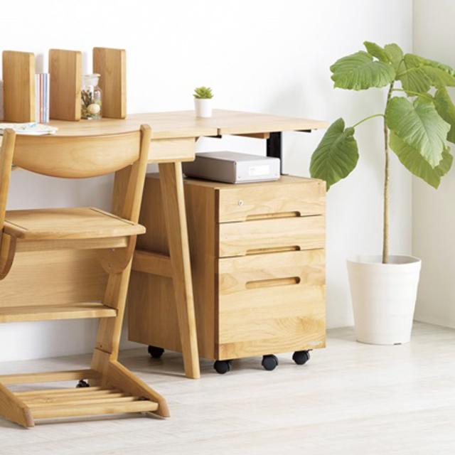 デスクワゴン キャスター付 3段 幅42.1cm 学習机用 共通袖 ( 鍵付き 引き出し デスク横 ワゴン 学習ワゴン サイドワゴン 無垢 木製 日本製 木目 リビング学習 リビング 北欧 ナチュラル )