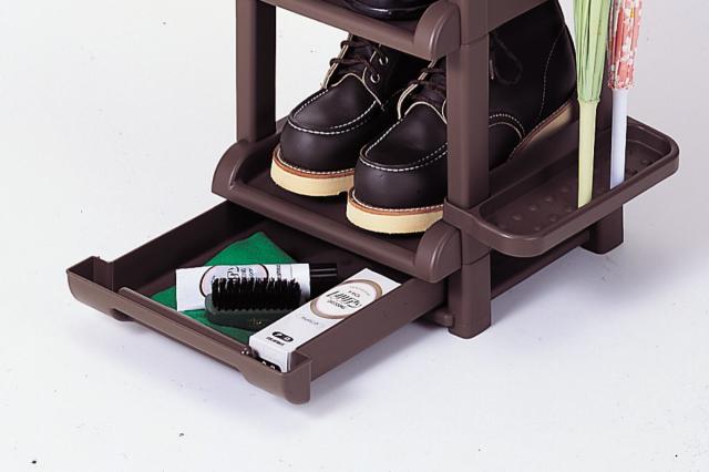最下段にはトレーが付いています。置き場所に困りがちな靴のお手入れ小物の収納にぴったりです。