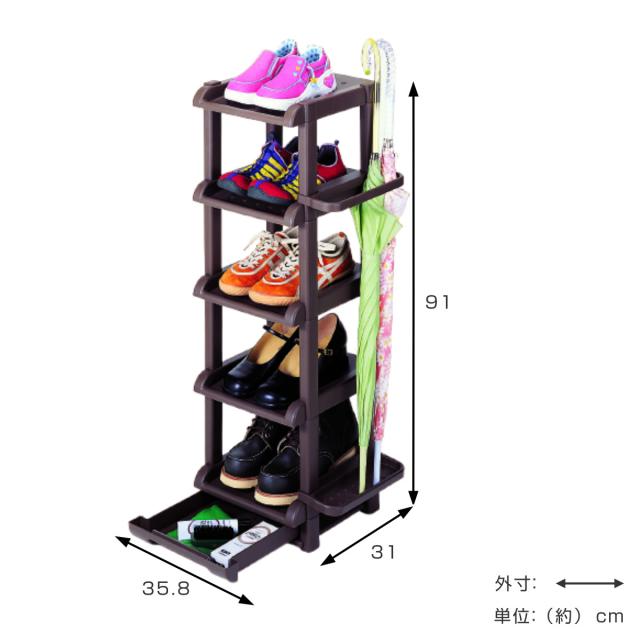 靴箱 シューズラック 5段 ( スリム 5足 省スペース 下駄箱 靴入れ 玄関収納 収納 傘立て 一人暮らし 日本製 ワンルーム 引出し付き 幅35.8cm コンパクト シューズボックス ラック スッキリ )