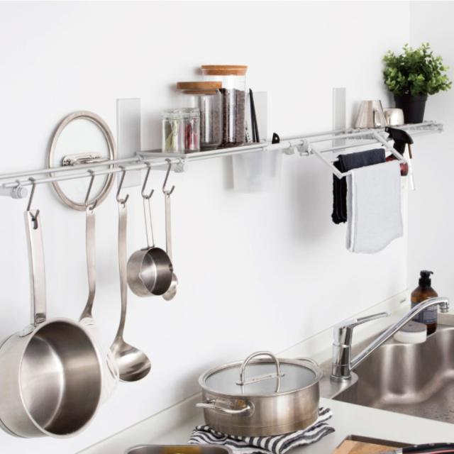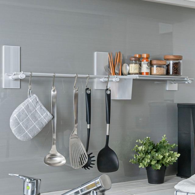 ご自宅の壁に取り付けるだけでマグネットがくっつくようになるマグピタボードです。よく使う物をマグネットで壁面に収納すれば、調理スペースをしっかり確保できます。レイアウトも自由自在。手に取りやすい位置に変更ができます。