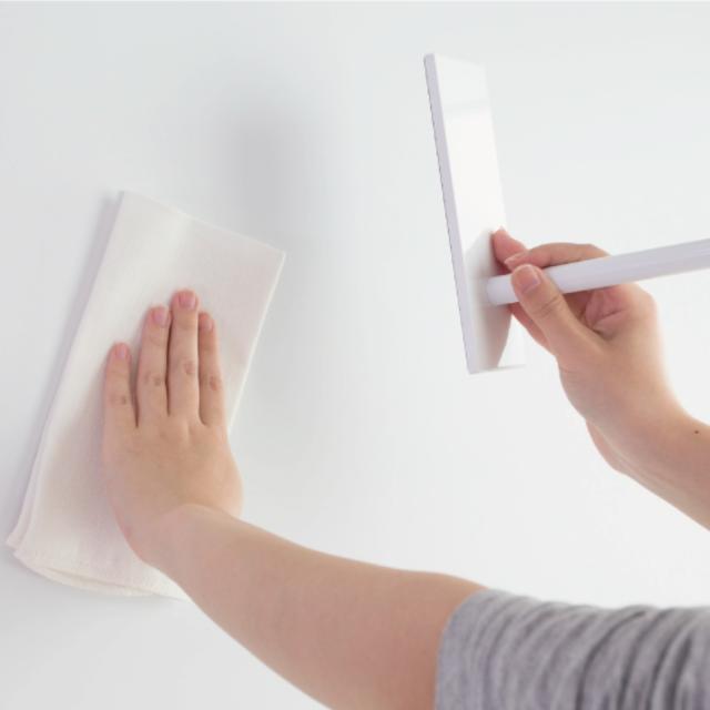 ボードの表面は汚れがつきにくい加工が施されており、お掃除が簡単です。また、マグネットで付いている収納アイテムはパッと取り外せるので、まるっと拭けていつでも衛生的にお使いいただけます。