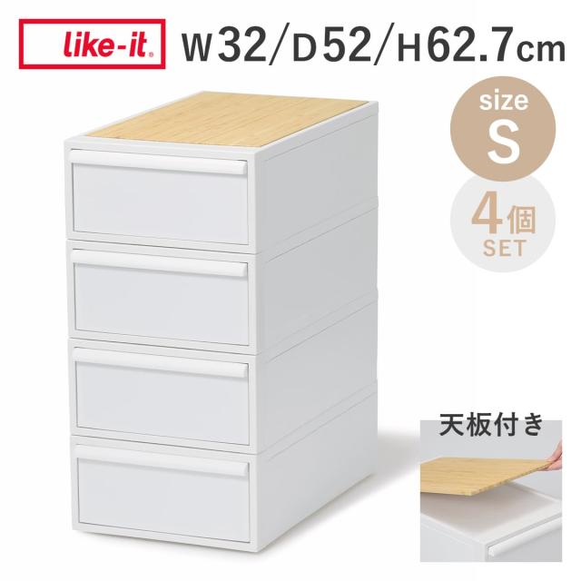 収納ケース 天板付き 同色4個セット 引き出し S 幅32×奥行52×高さ16.1cm クローゼットシステム ( 収納 クローゼット 衣類収納 収納ボックス 衣装ケース 積み重ね プラスチック 洋服 衣類 ケース おしゃれ 日本製 )
