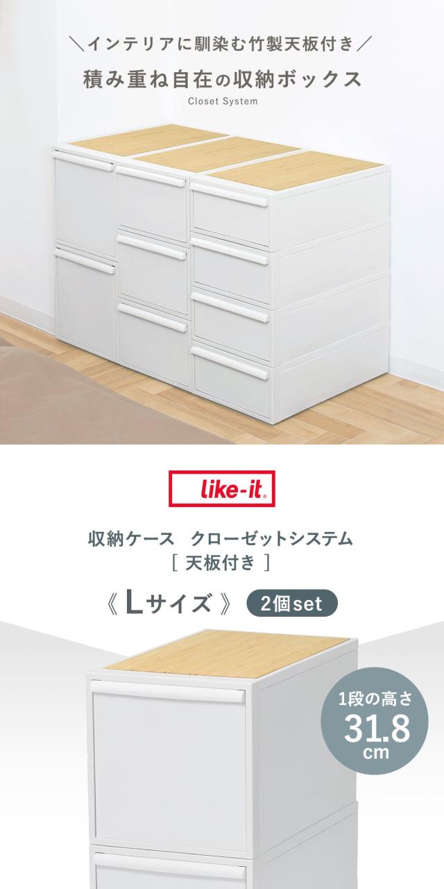 収納ケース 天板付き 同色2個セット 引き出し L 幅32×奥行52×高さ31.8cm クローゼットシステム ( 収納 クローゼット 衣類収納 収納ボックス 衣装ケース 積み重ね プラスチック 洋服 衣類 ケース おしゃれ 日本製 )