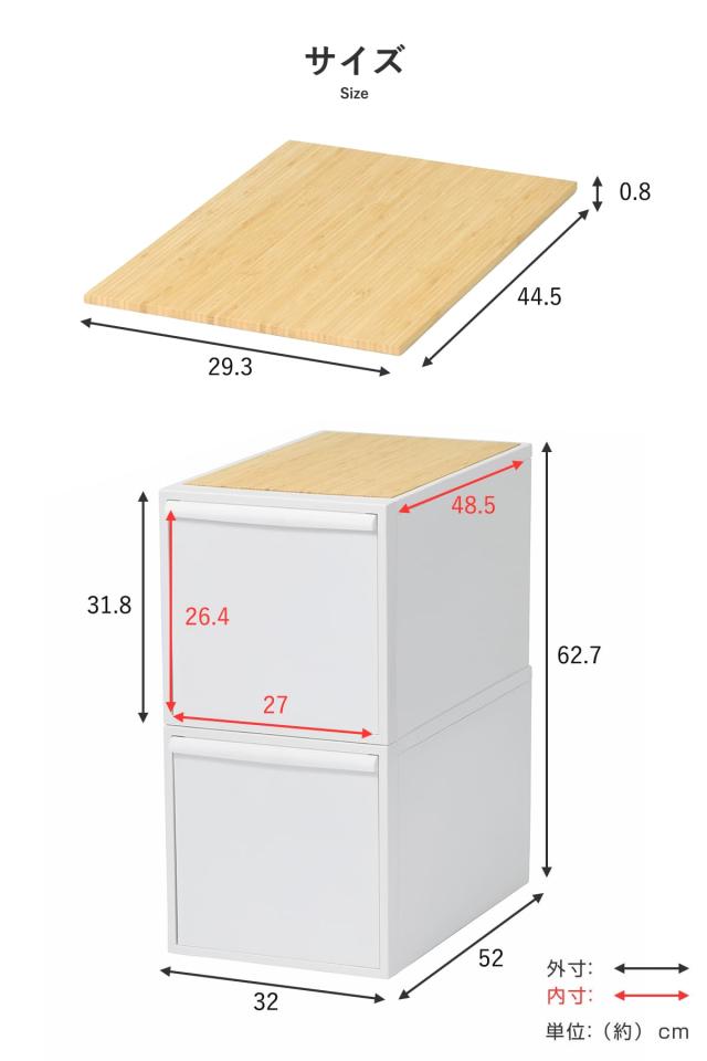 | 内容量 | 引出し:同色2個 竹製天板:1枚 |