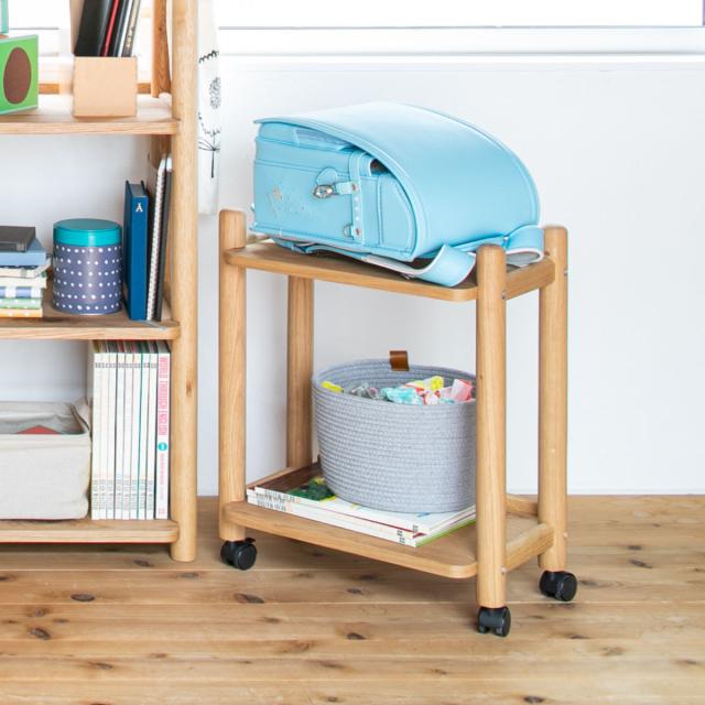 温かみのあるオーク無垢材を贅沢に使用したデスクワゴンです。ランドセルと学習教材などをまとめて置くことができます。シンプルなデザインのため、年齢や性別を問わずお使いいただけます。