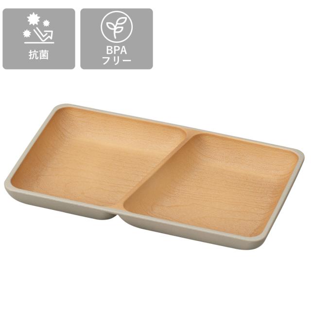 ランチプレート earth color 抗菌 スクエア 2枚入 ( BPAフリー 電子レンジ対応 食洗機対応 日本製 プレート お皿 皿 24cm おしゃれ かわいい シンプル 仕切り皿 ランチ皿 ワンプレート 軽い 割れにくい 丈夫 2つ仕切り )