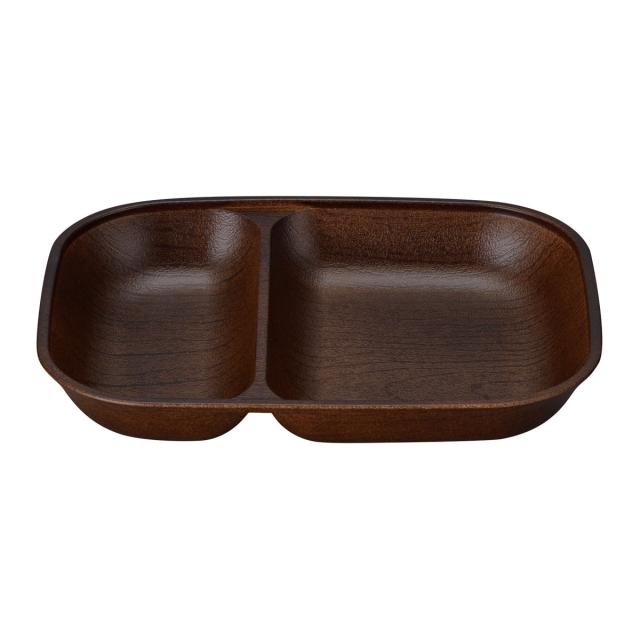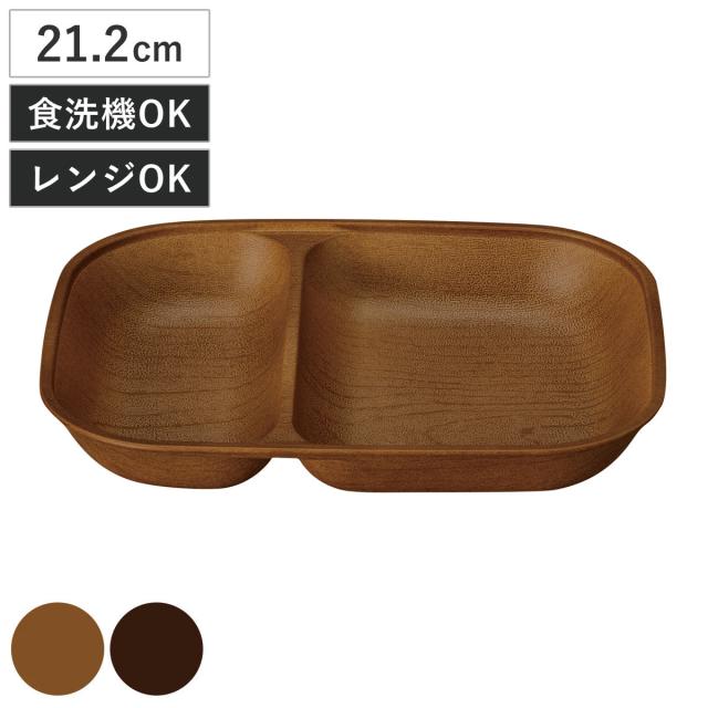 木目調の樹脂製仕切り付きスクエアプレート 21cm
