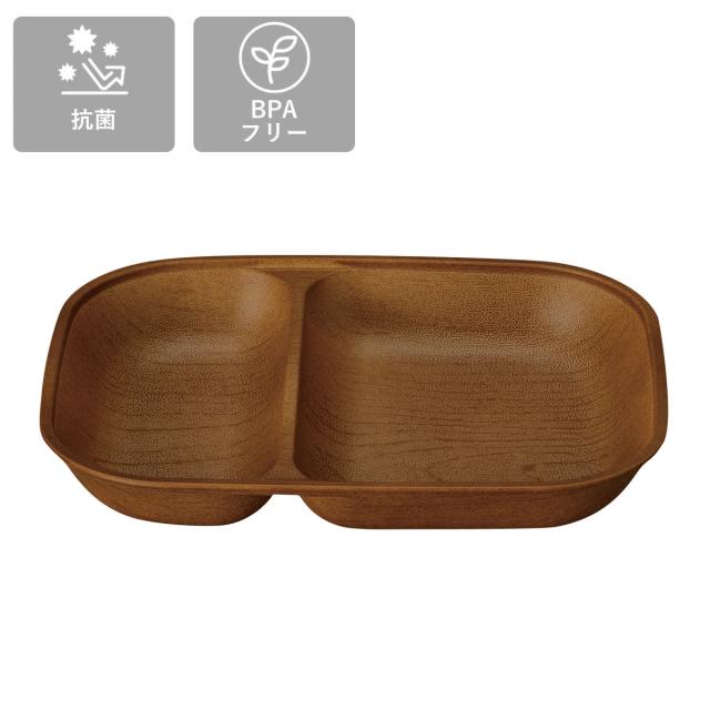 ランチプレート Woody 抗菌 すくえるスクエアプレート ( 電子レンジ対応 食洗機対応 BPAフリー 日本製 プレート 皿 お皿 仕切り皿 ランチ皿 おしゃれ ワンプレート 2つ仕切り 木目調 スクエア 角皿 四角 軽い 割れにくい )