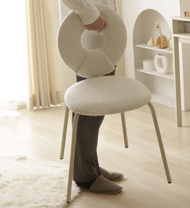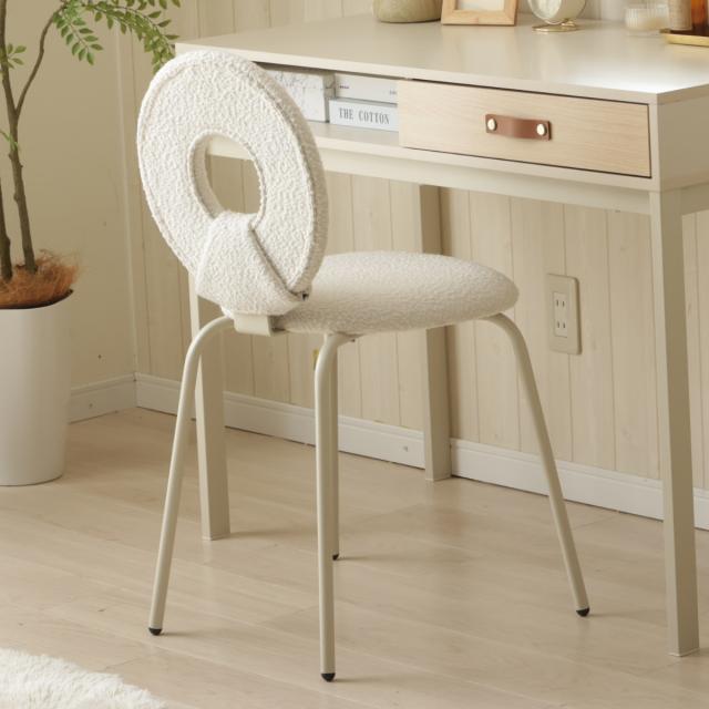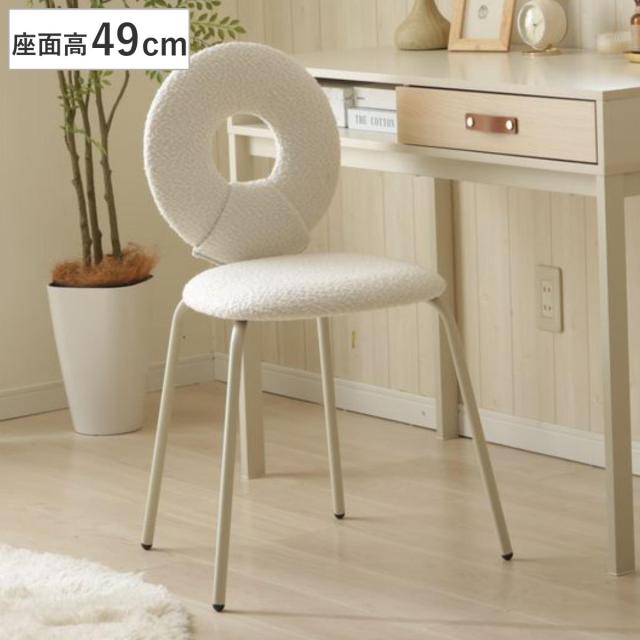 ダイニングチェア 座面高49cm ブークレ生地 ワークチェア モダンチェア ( ダイニング チェア チェアー イス 椅子 いす デスクチェア ふわふわ アームレス 食卓椅子 可愛い 背もたれ ドーナツ ファブリック ホワイト 白 )