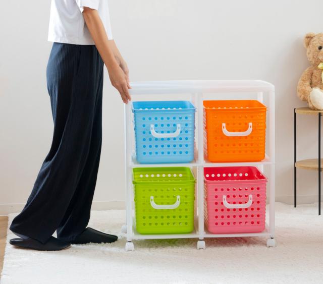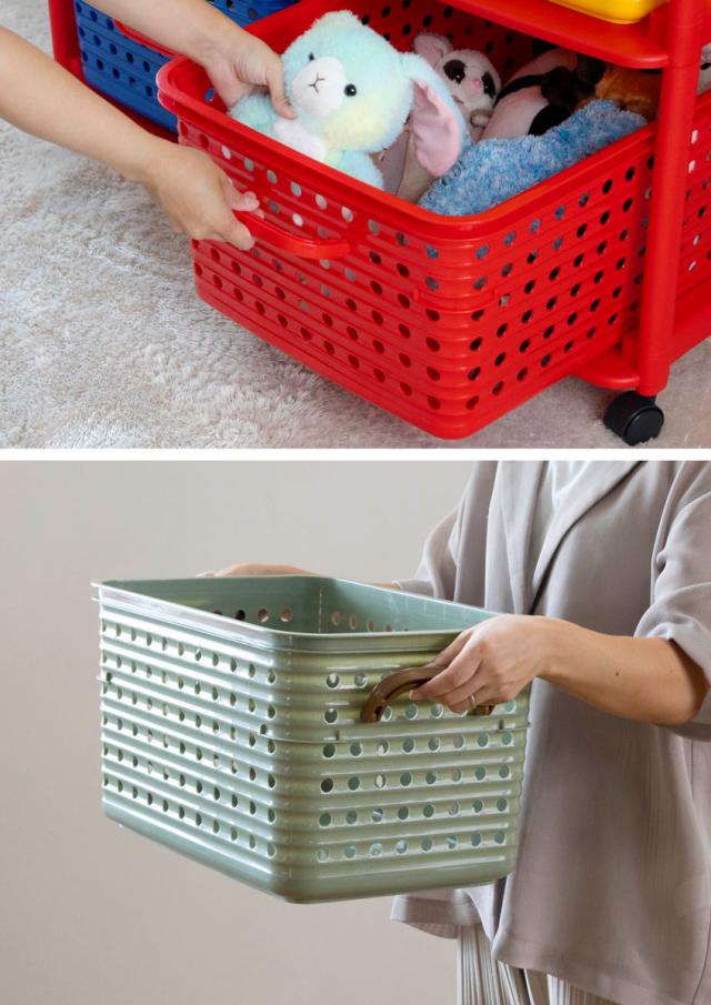 また、畳んだ家族の洗濯物をバスケットの色別に振り分け、各自で片付けてもらう用のケースとして使うなど、アイディア次第で収納以外にも幅広い用途でお使いいただけます。