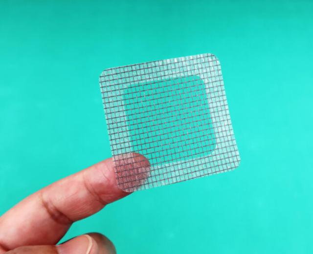 ガラス繊維でできた網が、使いやすい大きさにカットされ、周囲に接着剤が付いたシール状になっています。メッシュタイプなので風通しはスムーズです。
