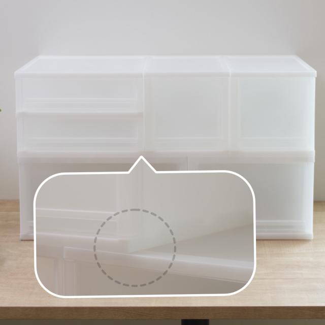 底面と天板の凹凸がフィットする構造だから、積み重ねてもズレにくく安心です。