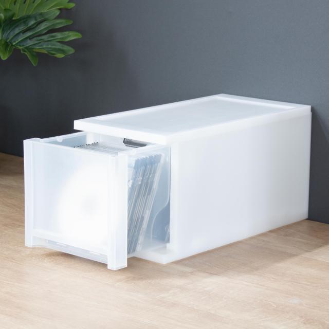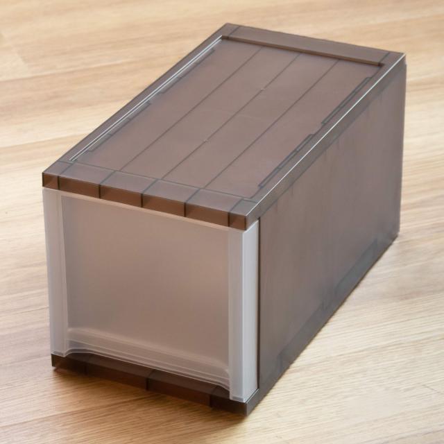 同じシリーズのワイドサイズやA4ケースと合わせて使うとスッキリ統一感のある印象に。BRIOシリーズは奥行と高さが同じなので、幅が違うサイズでも積み重ねることができます。