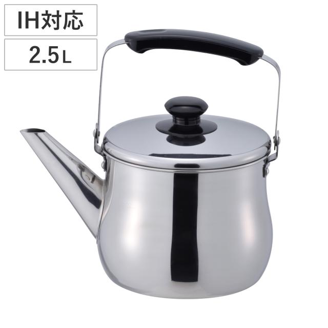 やかん 2.5L IH対応 リラカン 広口 ステンレスケトル ( ケトル ガス火対応 ステンレス 薬缶 ステンレス製ケトル シンプル 2.5リットル 湯沸かし 麦茶 お茶 ヤカン 洗いやすい )