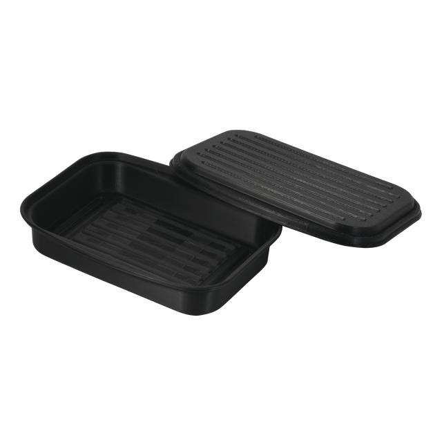 《 LH19299 オーブントレー トレイ 深型トレー 深型トレイ 容器 波型 凹凸 焼き目 温め 蒸し料理 グリル野菜 魚 肉 グリル キッチンツール キッチン雑貨 魚焼き用トレー 魚焼き用トレイ 便利 手軽 朝食 便利グッズ 調理用品 キッチン用品 おすすめ 黒 ブラック 》