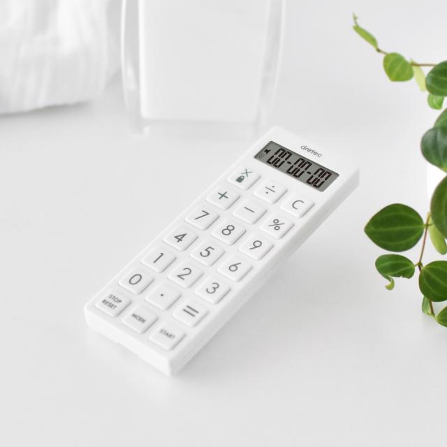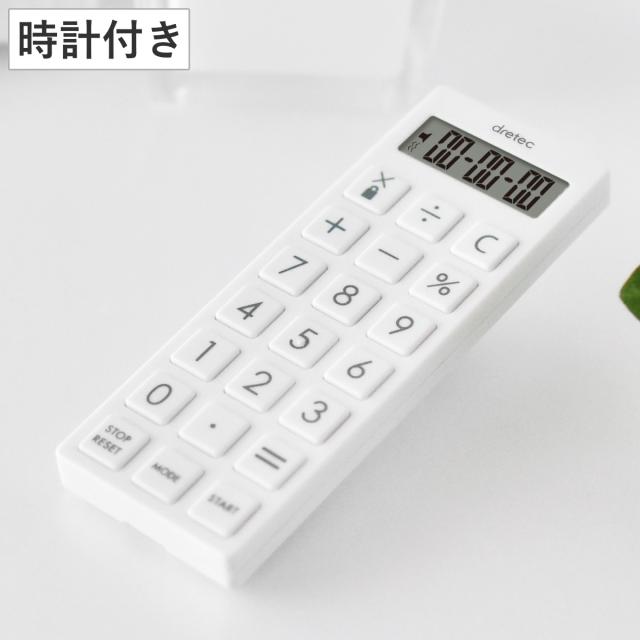 タイマー 時計付 電卓タイマー スリムタイプ ネックストラップ付 ( ドリテック DRETEC 時計 電卓 ストップウォッチ アラーム 多機能 ポケットサイズ ミニ 持ち運び デジタルタイマー 誤動作防止機能 医療 看護 オフィス )