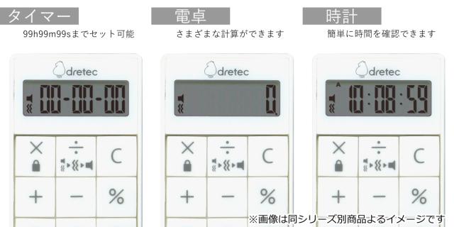 | 備考 | 使用電池:リチウム電池 CR2025×1個 表示方法:液晶デジタル8桁 計算機能:加減乗除計算、べき乗計算、四則定数計算、パーセント計算 タイマー 最大セット時間:99時間99分99秒 タイマー カウントアップ最大計測時間:99時間59分59秒 アラーム鳴動時間:約 30秒間 オートパワーオフ:約 3分 |