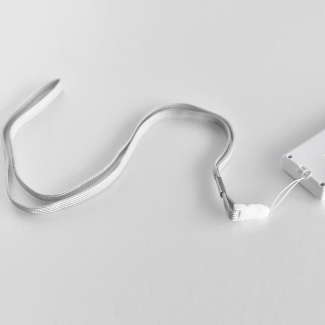 首に下げて持ち運べるネックストラップ付きです。ポケットが無い時でも携帯できて便利です。