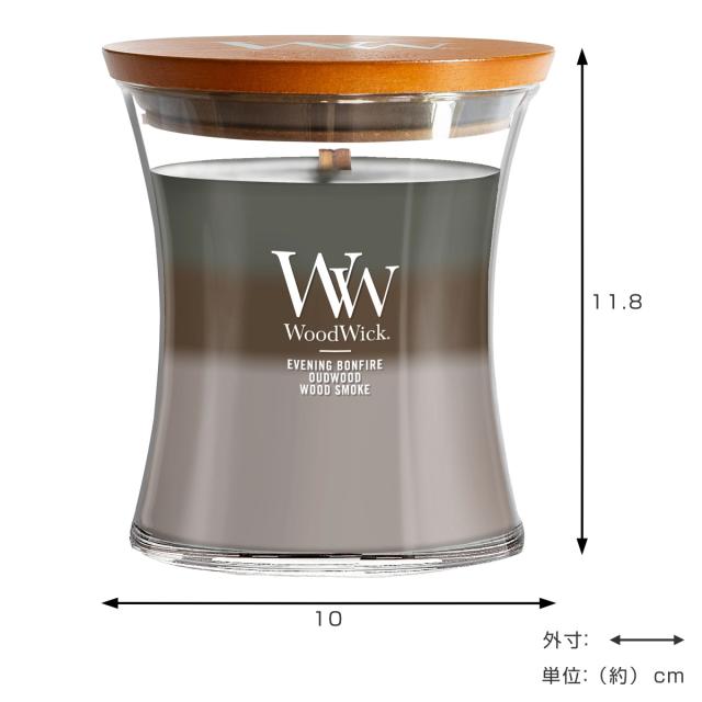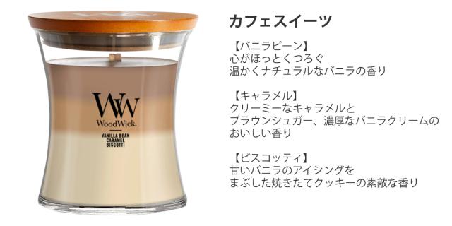 | 材質 | 木製芯、ガラス、パラフィン(ソイワックス配合)、木製蓋付き |