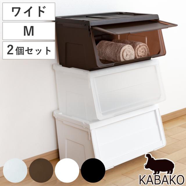 収納ボックス 前開き 幅60×奥行42×高さ31cm KABAKO カバコ ワイド M 同色2個セット ( 収納ケース 日本製 収納 衣装ケース おもちゃ箱 クローゼット収納 衣類 洋服 積み重ね フタ付き キッチン ストッカー プラスチック フラップ )