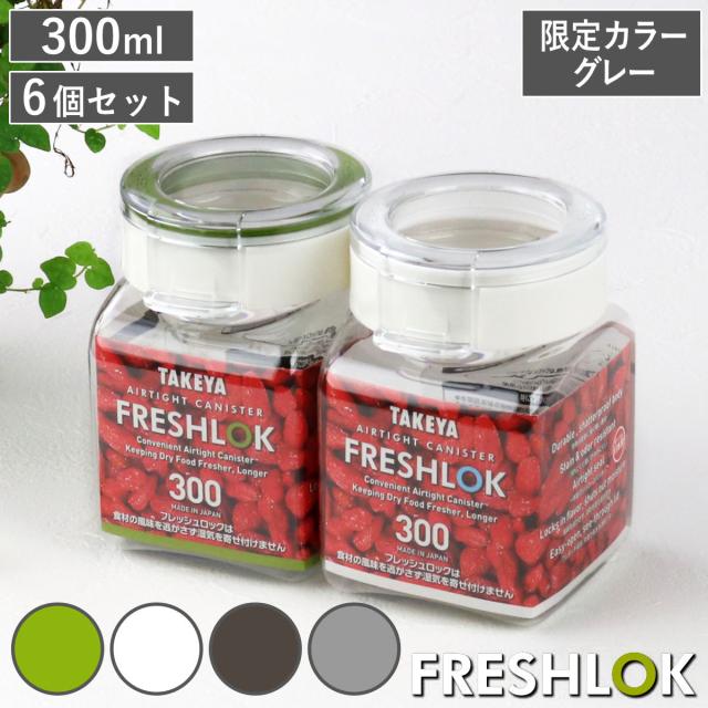 【限定カラーグレー】 保存容器 300ml フレッシュロック 角型 お得な同色6個セット ( キッチン収納 キャニスター 調味料入れ ストッカー 密閉 透明 日本製 プラスチック ワンタッチ 高気密 引き出し収納 軽量 おしゃれ FRESHLOK )