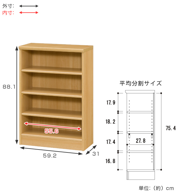 | サイズ | 外寸:約 幅59.2×奥行31×高さ88.1(cm) 内寸:約 幅55.6×奥行27.8×高さ75.4(cm) |