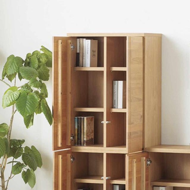 天板や扉のアールデザインが特徴的なアールシリーズの本棚です。扉の丸みと、木の温もりを感じる優しい色合いのアルダー無垢材が他にない質感を演出します。