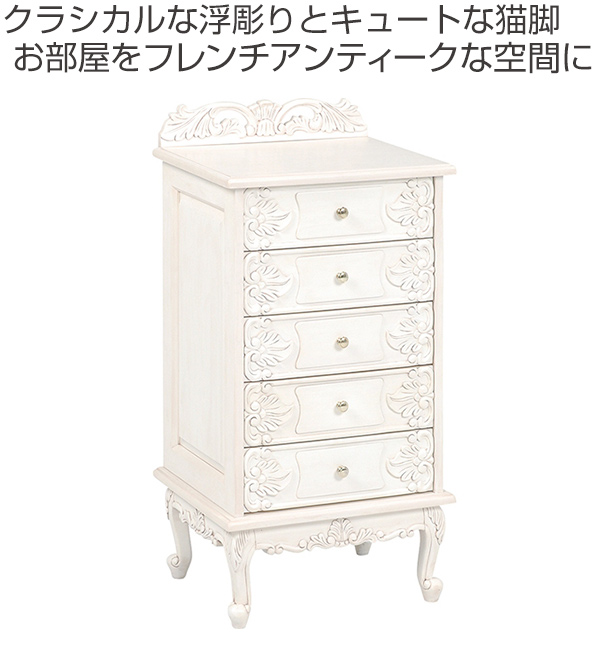 チェスト 5段 姫系 猫脚 ヴィオレッタ 幅50cm ( タンス 衣類収納 リビングチェスト 引き出し 整理タンス ネコ足 ネコ脚 ホワイト 白 白家具 幅50 5杯 アンティーク調 姫系家具 )