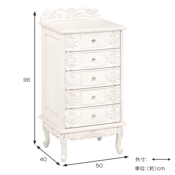 《 LH925 ロココ調 大人かわいい 可愛い かわいい ヨーロピアン ロマンチック 女子 女の子 リビング 寝室 新居 新婚 引越し 一人暮らし 五段 引き出し 引出 幅50 奥行40 高さ95 cm センチ 》
