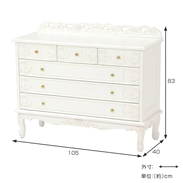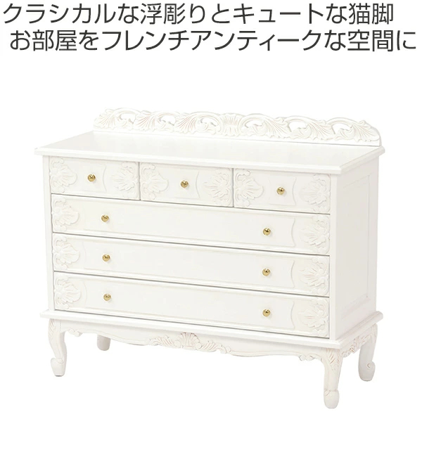 ワイドチェスト 幅105cm 引出し6杯 姫系 猫脚 完成品 ヴィオレッタ ( チェスト タンス 衣類収納 リビングチェスト 白家具 木製 引き出し 整理タンス ネコ足 ネコ脚 ホワイト 白 アンティーク アンティーク調 姫系家具 )