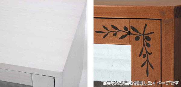 | 清潔感のあるホワイト 清潔感のある空間を演出してくれるホワイトカラーです。 | 可愛いオリーブ柄のブラウン オリーブ柄のペイントが可愛いブラウンカラーです。 |