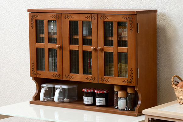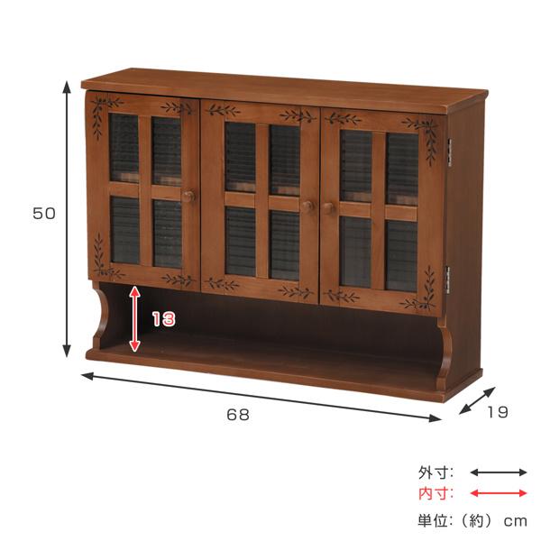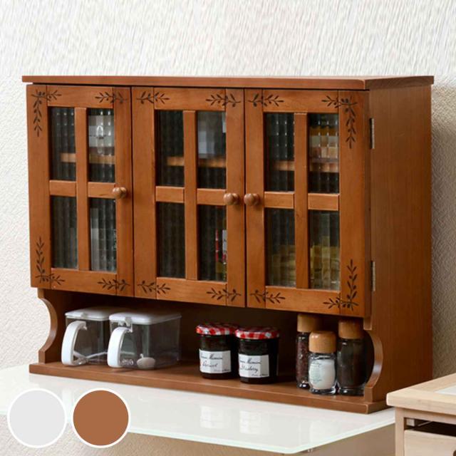 調味料ラック 3段 開き戸 アンティーク調 キッチン収納 幅68cm ( 調味料入れ 調味料ケース カウンターラック カウンター上収納 収納ラック 木製 台所用品 キッチン用品 カントリー家具 カントリー雑貨 キッチン雑貨 )