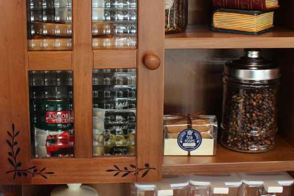 扉には中身を見せすぎないモザイクガラスを使用しています。レトロな雰囲気のデザインなのでお部屋のアクセントとしてもお楽しみいただけます。
