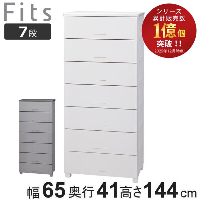 チェスト フィッツチェスト フルフラット 6507 7段 幅65×奥行41×高さ144cm ( タンス 引き出し 収納 衣類収納 完成品 プラスチック 引き出しロック フィッツ 衣装ケース リビング収納 収納ケース 洋タンス ストッパー付き )