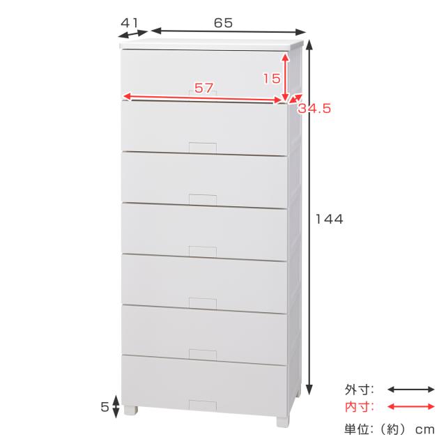 | サイズ | 約 幅65×奥行41×高さ144(cm) 引出内寸:約 幅57×奥行34.5×高さ15(cm) |