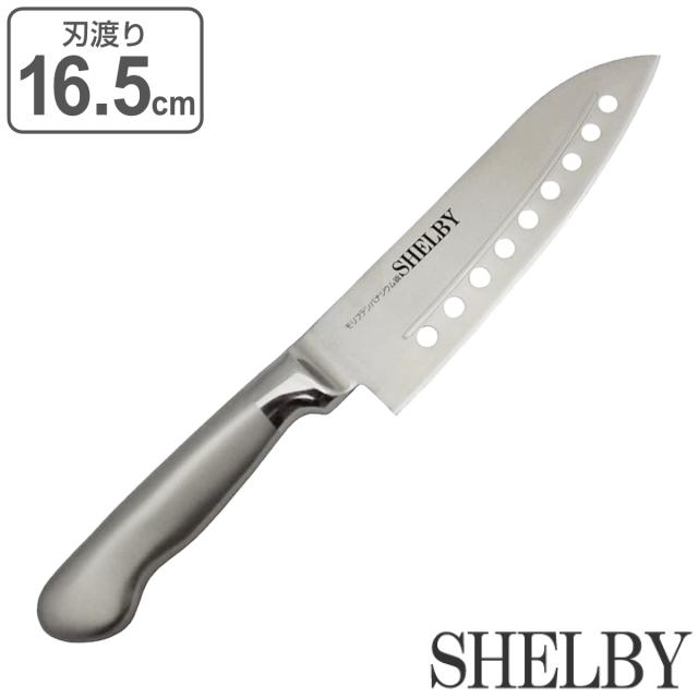 三徳包丁 16.5cm シェルビー 穴付き オールステンレス 食洗機対応 穴あき包丁 ( 包丁 料理包丁 万能包丁 キッチンナイフ 文化包丁 一体型 16.5センチ 165mm 165ミリ 調理小物 調理道具 包丁 オールステンレス ステンレス 包丁)