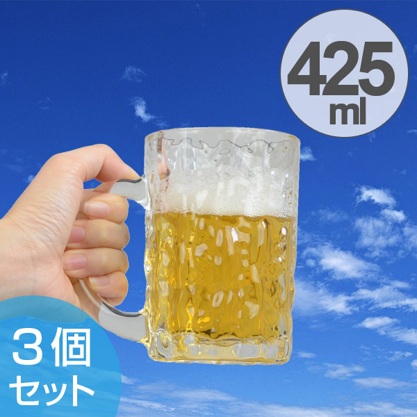 ビールジョッキ アイスクル ジョッキ M 425ml ガラス製 3個セット ( 食洗機対応 ビアジョッキ ビヤージョッキ 中ジョッキ ビールグラス ビアマグ ビヤーマグ ガラス食器 )