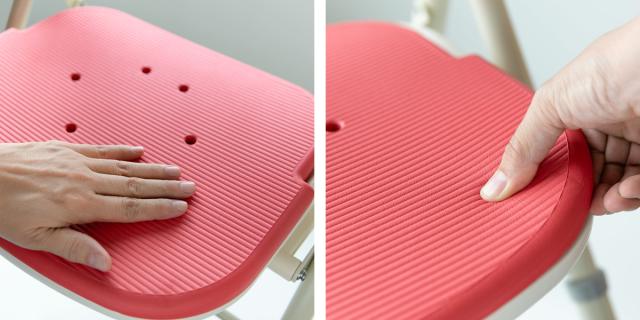 触っても冷たくない座面パッドで、座った際のひんやり感も軽減されます。パッドはお尻が痛くなりにくいやわらかい素材で、優しい座り心地です。