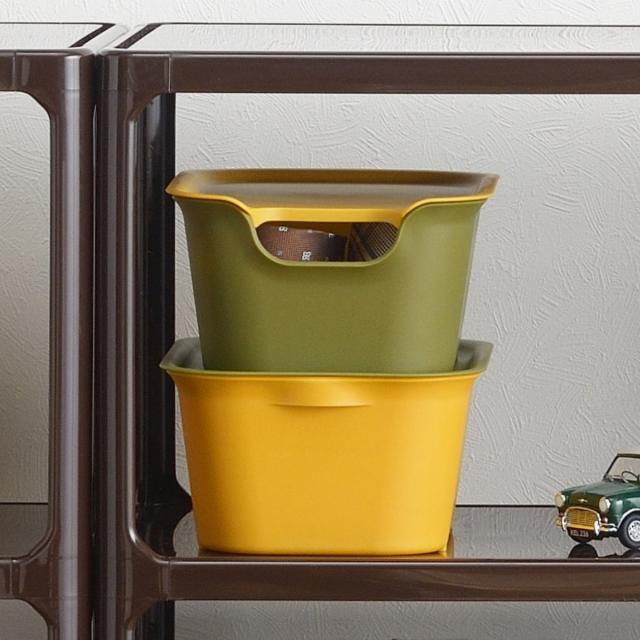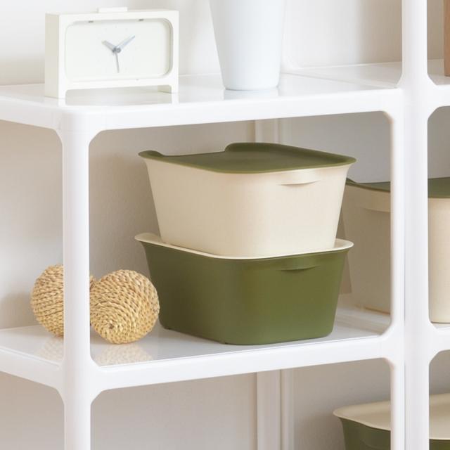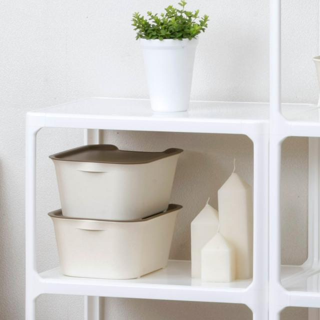 別売りのカタスSサイズ専用のフタです。フタをすることで収納した物をホコリなどから守ってくれます。同じサイズ同士で積み重ねることもできるので、省スペースで収納場所が確保できます。