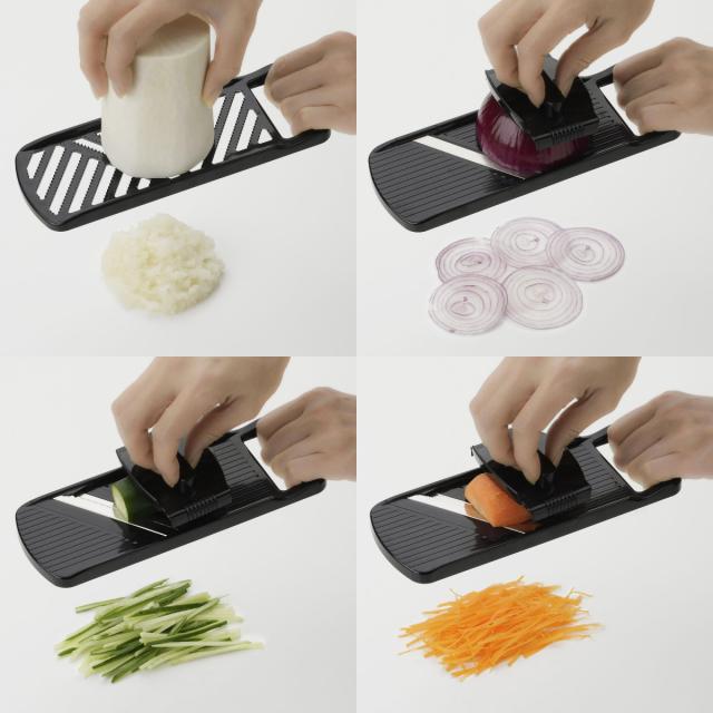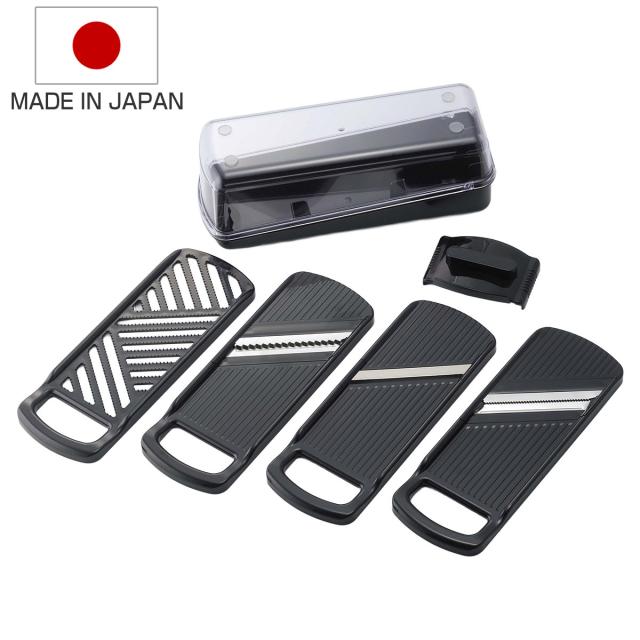 スライサー おろし器 セット スゴ切れ 野菜調理器セット 日本製 ( 受け皿 安全ホルダー 千切り器 おろし金 スライス 大根おろし 薬味おろし つま切り 千切り ケース付き 調理器具 ブラック )