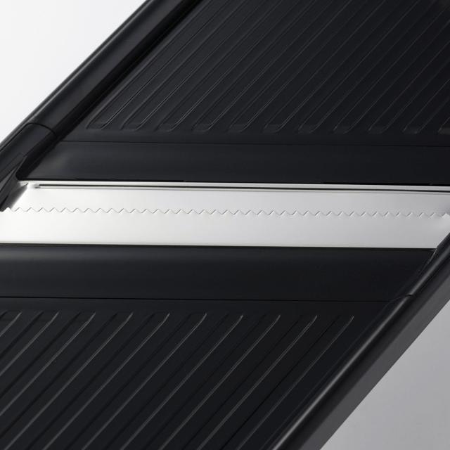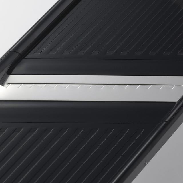 専用ホルダー付きで、小さくなった野菜も最後までしっかりカットできます。手を傷つけにくく、安心してお使いいただけます。