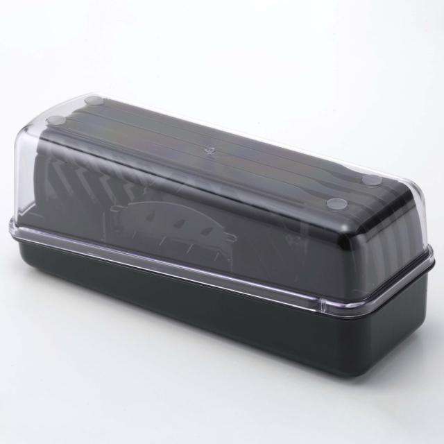 | 材質 | 本体・専用ケース:ABS樹脂 刃:ステンレス鋼 ケースフタ:AS樹脂 ホルダー:ポリプロピレン 脚ゴム:CBRゴム |