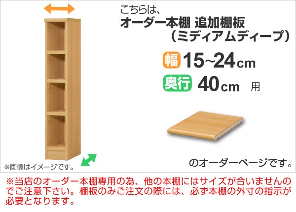 専用追加棚板 オーダー本棚 奥行40cm 本体幅15-24cm用 ( オーダーメイド セミオーダー 本棚 多目的ラック )