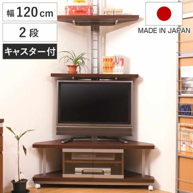 セット品 テレビ台 幅120cm 突っ張り コーナーラック 2段 日本製 ( セット 棚 ラック テレビボード AV収納 テレビラック TV台 TVラック コーナー 可動棚 キャスター付 )