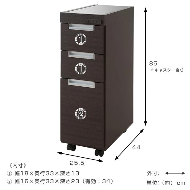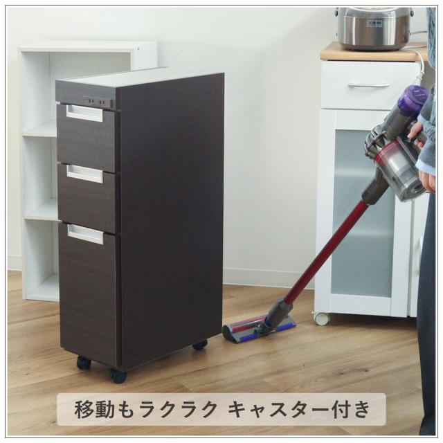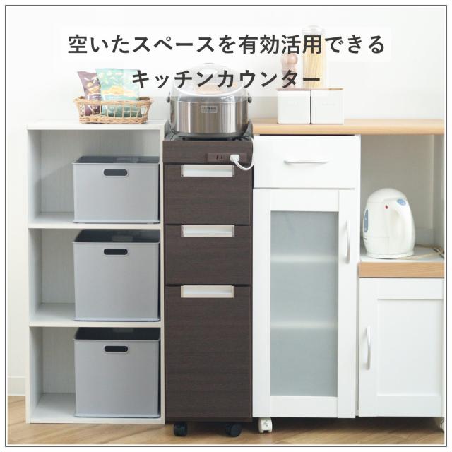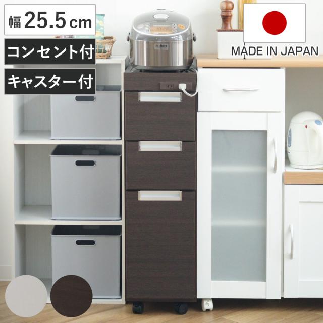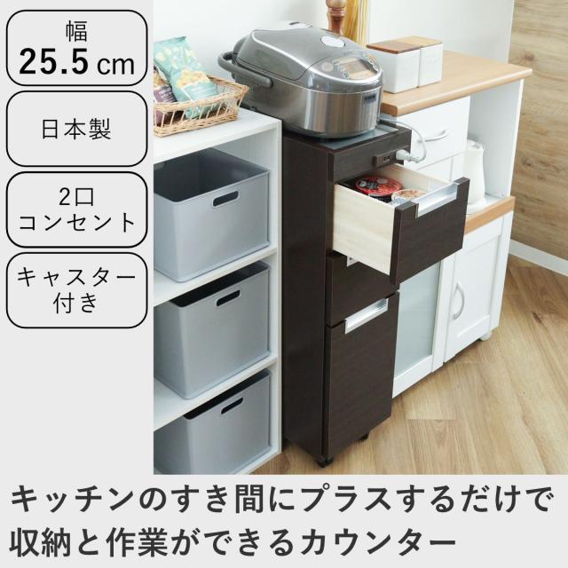 キッチンカウンター スリムカウンター ステンレストップ 幅25.5cm ( キッチンワゴン キッチン 収納 キッチンラック スリム 完成品 日本製 キッチン収納 ワゴン 隙間 すき間 省スペース 白 ブラウン キャスター付き コンセント付き )