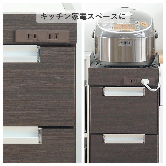 正面に2口コンセント(合計1500W)が付いているので、ケトルや炊飯器などのキッチン小型家電の定位置としても最適です。